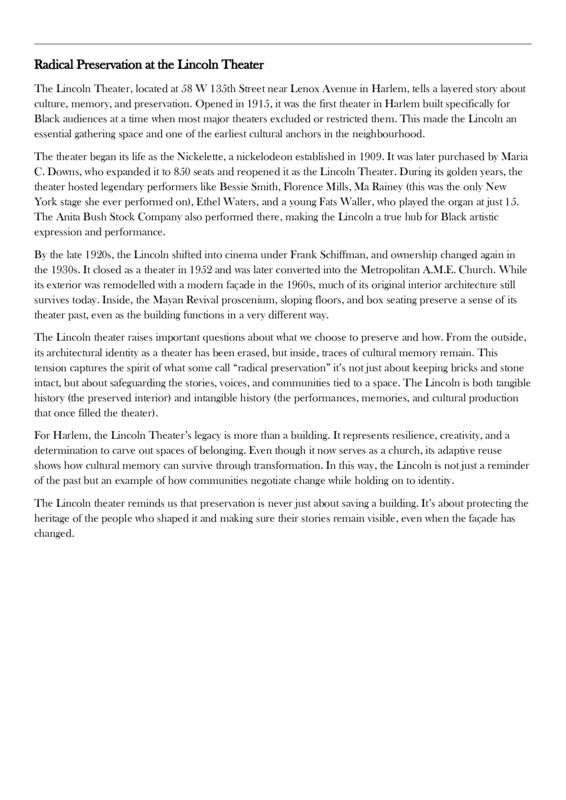 Lincoln Theatre Essay
